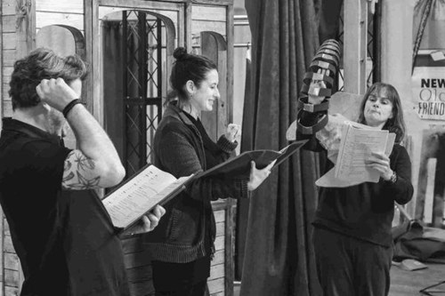 Oh yes, do you remember me talking about the roof top train chase and the underwater escape from handcuffs and a sinking car? Figuring out how to put those on stage in our ‘low-fi analogue theatre’ style has been a gloriously difficult challenge and we love it.